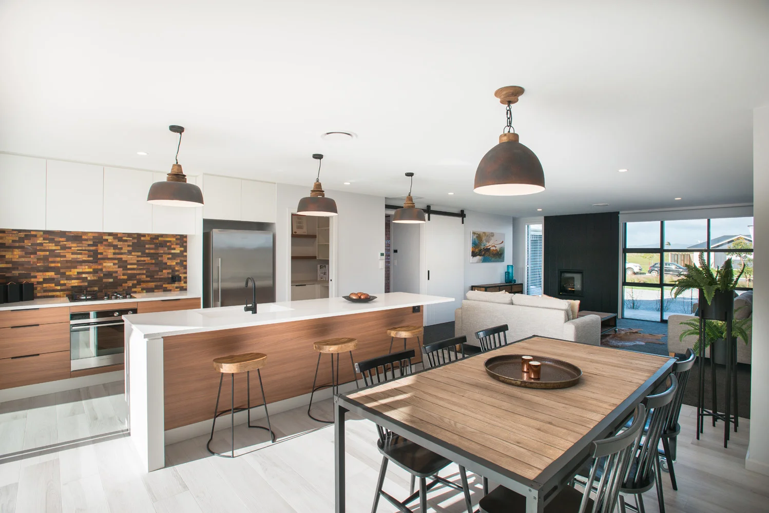 A striking combination of The Brickery's Gypsy Rose brick from their Artisan range, paired with James Hardie Easylap Board & Batten and Stria painted in contrasting 'Flaxpod' and 'Seafog' work together to add a touch of flair to this first time home builders property. With the homeowner appreciating the guidance and expert advice received throughout the project ensuring the end result was exactly what they had hoped for.